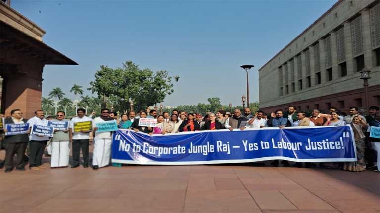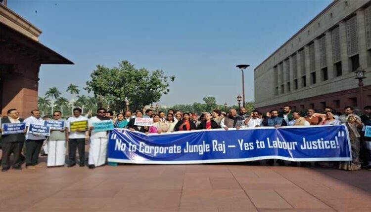 विपक्षी गठबंधन ने तीनों श्रम कानूनों को वापस लेने की मांग करते हुए संसद परिसर में जोरदार नारेबाजी की और कहा कि ये कानून श्रमिकों को कंपनियों के भरोसे छोड़ देते हैं, जो उनके हितों के खिलाफ है।