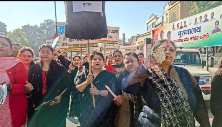 देहरादून में नर्सिंग बेरोज़गार युवतियों के साथ प्रदर्शन के दौरान हुई अभद्रता के विरोध में आज उत्तराखंड महिला कांग्रेस ने प्रदेश अध्यक्ष ज्योति रौतेला के नेतृत्व में पुलिस मुख्यालय पर जोरदार प्रदर्शन किया। घटना तब सुर्खियों में आई जब शांतिपूर्ण धरना दे रही नर्सिंग युवतियों को महिला पुलिस कर्मियों द्वारा धक्का-मुक्की और थप्पड़ मारे जाने का वीडियो सामने आया। इसी के विरोध में महिला कांग्रेस ने प्रदेश कांग्रेस मुख्यालय से रैली निकालकर पुलिस मुख्यालय का घेराव किया, जहां बड़ी संख्या में नर्सिंग बेरोज़गार युवतियाँ भी शामिल हुईं।