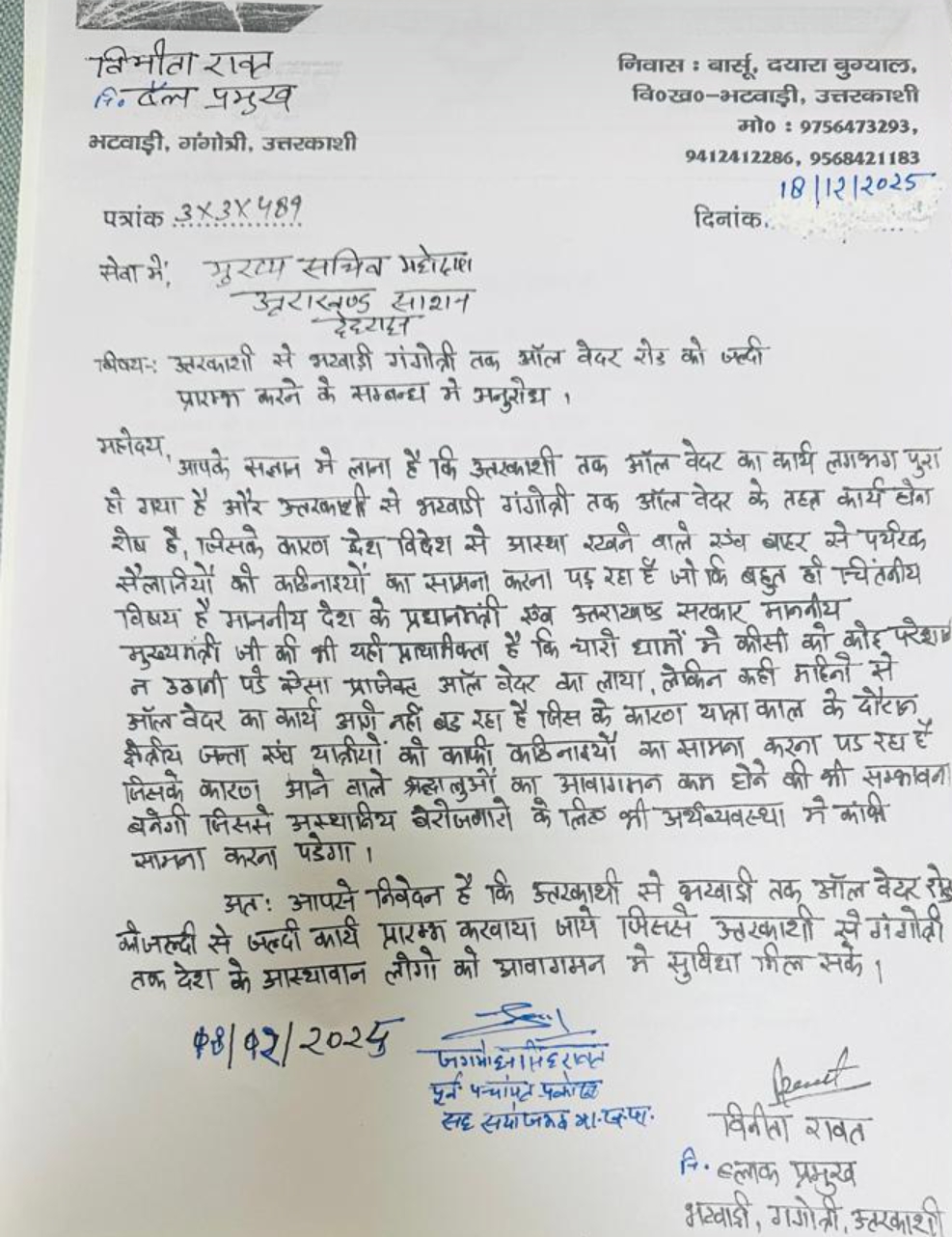 मुख्य सचिव महोदय ने पूरे विषय को गंभीरता से लेते हुए ऑल वेदर रोड का कार्य शीघ्र प्रारंभ कराने का स्पष्ट आश्वासन दिया। इस सड़क के निर्माण से जाम की समस्या से स्थायी राहत मिलेगी और क्षेत्रवासियों के साथ-साथ यात्रियों को भी सुगम, सुरक्षित एवं निर्बाध आवागमन की सुविधा उपलब्ध होगी।