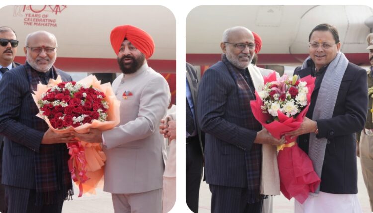 देहरादून। उपराष्ट्रपति सी. पी. राधाकृष्णन के देवभूमि उत्तराखंड आगमन पर शुक्रवार को जॉलीग्रांट हवाई अड्डे पर राज्यपाल लेफ्टिनेंट जनरल गुरमीत सिंह (से.नि.) एवं मुख्यमंत्री पुष्कर सिंह धामी ने उनका आत्मीय स्वागत किया।