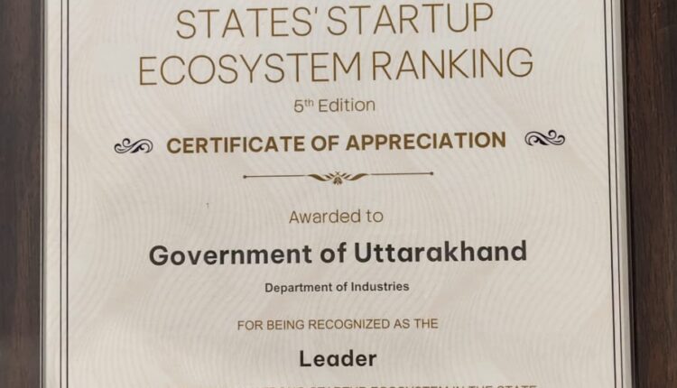 देहरादून। उत्तराखण्ड ने एक बार फिर राष्ट्रीय स्तर पर अपनी पहचान मजबूत की है। भारत सरकार के वाणिज्य एवं उद्योग मंत्रालय के अंतर्गत उद्योग संवर्धन एवं आंतरिक व्यापार विभाग (DPIIT) द्वारा जारी स्टार्टअप इंडिया रैंकिंग के 5वें संस्करण में उत्तराखण्ड को मजबूत स्टार्टअप इकोसिस्टम विकसित करने के लिए ‘लीडर’ का दर्जा दिया गया है।