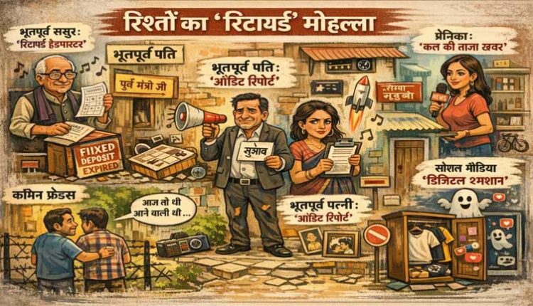 आज के दौर में रिश्ते खत्म नहीं होते, बल्कि “अपग्रेड” हो जाते हैं—बस स्टेटस बदल जाता है: *पति से भूतपूर्व पति, प्रेमिका से एक्स, और ससुर से रिटायर्ड सलाहकार।* यही आधुनिक रिश्तों का ‘रिटायर्ड मोहल्ला’ है, जहां सब अलग रहते हुए भी किसी न किसी मोड़ पर टकरा ही जाते हैं।