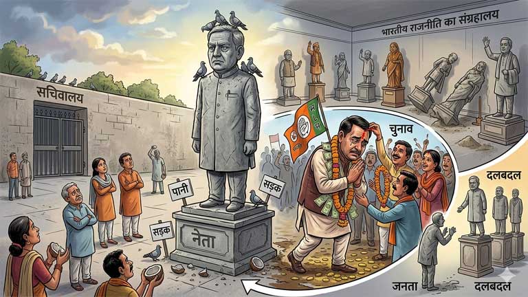 Krishna Gopal Vidyarth भारतीय राजनीति में चुनावी मौसम आते ही नेताओं का स्वभाव मानो बदल जाता है। चुनाव से पहले वही नेता जनता के बीच विनम्र, सहानुभूतिपूर्ण और सेवा भाव से भरे नजर आते हैं, लेकिन चुनाव जीतते ही उनका व्यवहार अचानक कठोर और दूरस्थ हो जाता है। यही विरोधाभास इस व्यंग्य ‘पत्थर के सनम’ का मुख्य विषय है।