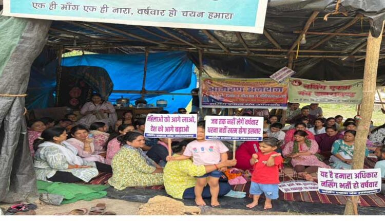 देहरादून। राजधानी देहरादून में नर्सिंग एकता मंच के बैनर तले चल रहा नर्सिंग अभ्यर्थियों का धरना रविवार को 135वें दिन भी जारी रहा। लंबे समय से शांतिपूर्ण तरीके से अपनी मांगों को उठा रहे अभ्यर्थियों ने अब सरकार की ओर से ठोस कार्रवाई न होने पर आंदोलन को और तेज कर दिया है। इसी क्रम में अभ्यर्थियों ने आज से अनिश्चितकालीन आमरण अनशन शुरू कर दिया।