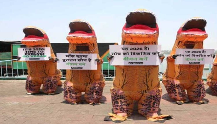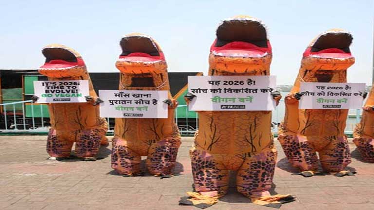 भोपाल में पृथ्वी दिवस से ठीक पहले एक अनोखा जनजागरूकता अभियान देखने को मिला, जिसने शहरवासियों का ध्यान अपनी ओर आकर्षित किया। PETA India और Animals With Humanity (AWH) के समर्थकों ने हवा से फूलने वाले डायनासोर कॉस्ट्यूम पहनकर सड़कों पर प्रदर्शन किया और लोगों से वीगन जीवनशैली अपनाने की अपील की।